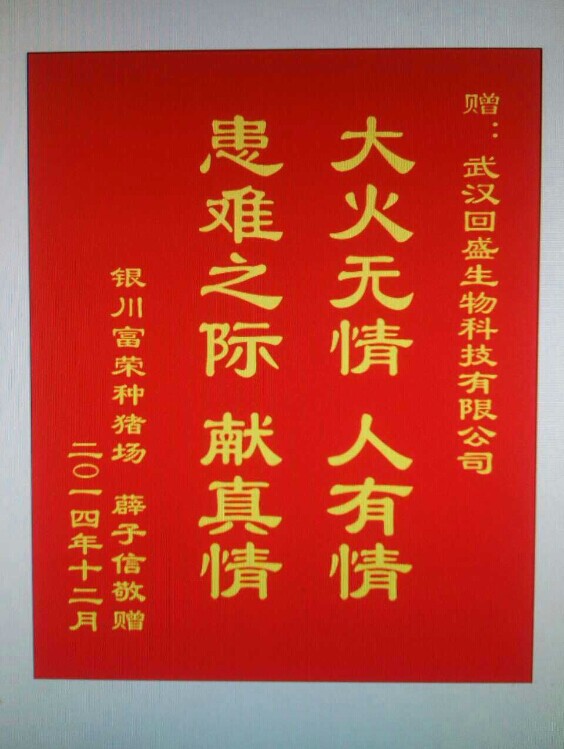 人間有大愛,回盛有真情!在這場災(zāi)難中讓我真切感受到了回盛公司的胸懷,正如回盛一直傳遞的“盛德立業(yè)”的企業(yè)精神一樣,我相信,一個(gè)有社會責(zé)任感的企業(yè),一個(gè)用技術(shù)服務(wù)養(yǎng)豬人的企業(yè),注定會有更美好的未來!