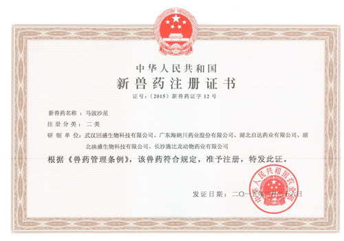 新獸藥注冊(cè)證書(shū)(馬波沙星)